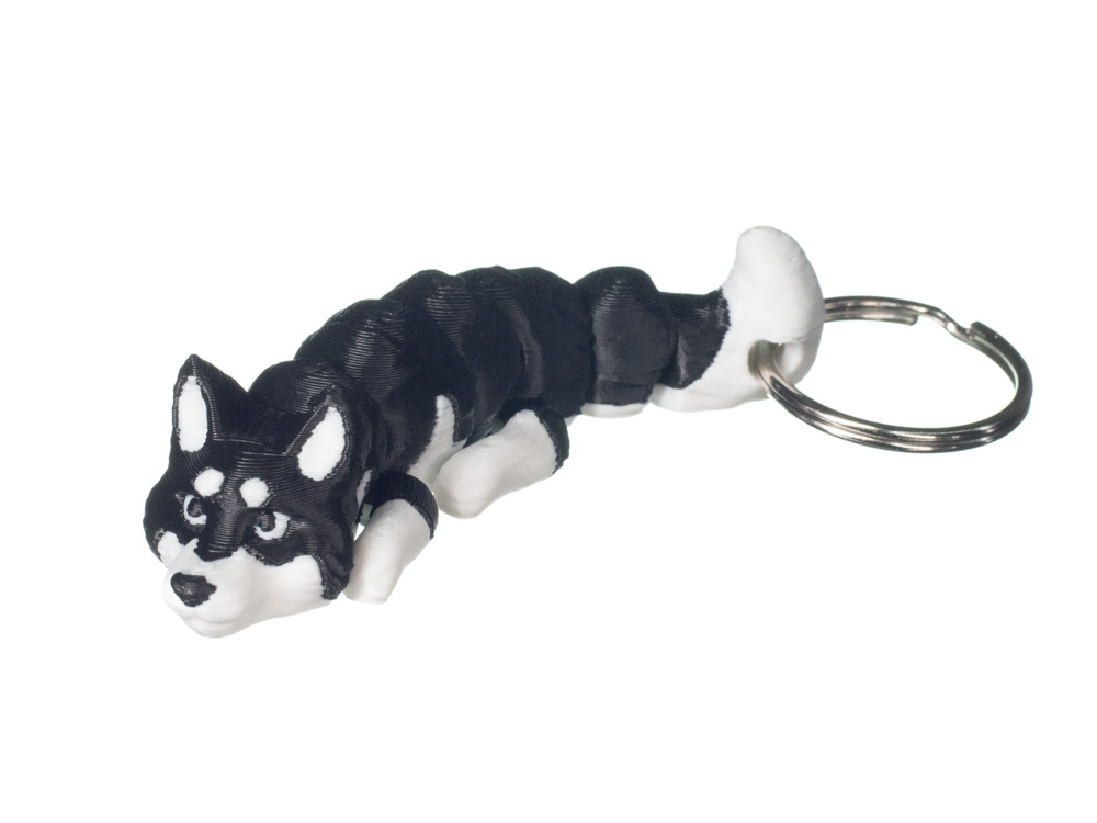 Brelok 3D Husky czarno-biały – brelok do kluczy pies, druk 3D