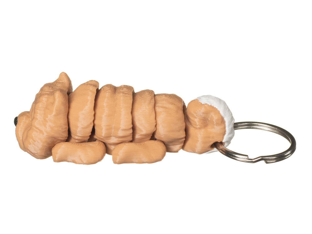 Prezentowany brelok posiada jednolite, jasnobrązowe umaszczenie o ciepłym odcieniu + biały akcent na ogonie. Cała sylwetka utrzymana jest w jednej kolorystyce, a pyszczek podkreślają ciemne oczy oraz czarny nosek, co nadaje brelokowi wyrazisty i sympatyczny wygląd.