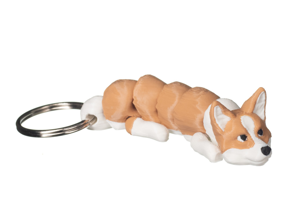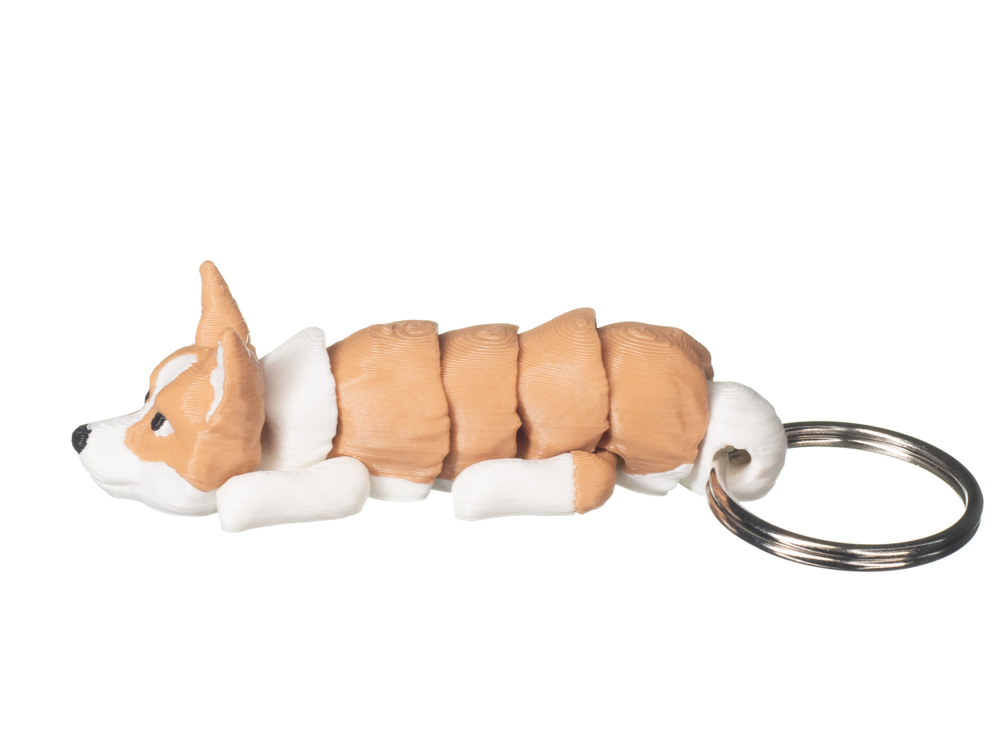 Brelok 3D w kształcie Corgi to kompaktowy i bardzo czytelny wizualnie dodatek inspirowany charakterystyczną sylwetką tej rasy. Wariant w ciepłej, rudawo-białej kolorystyce z jasnym pyskiem i łapami prezentuje się przyjaźnie i estetycznie. Wyraźna struktura powierzchni oraz starannie zaznaczone detale sprawiają, że brelok wygląda lekko, ale solidnie.
