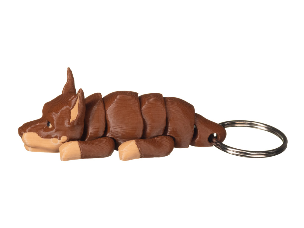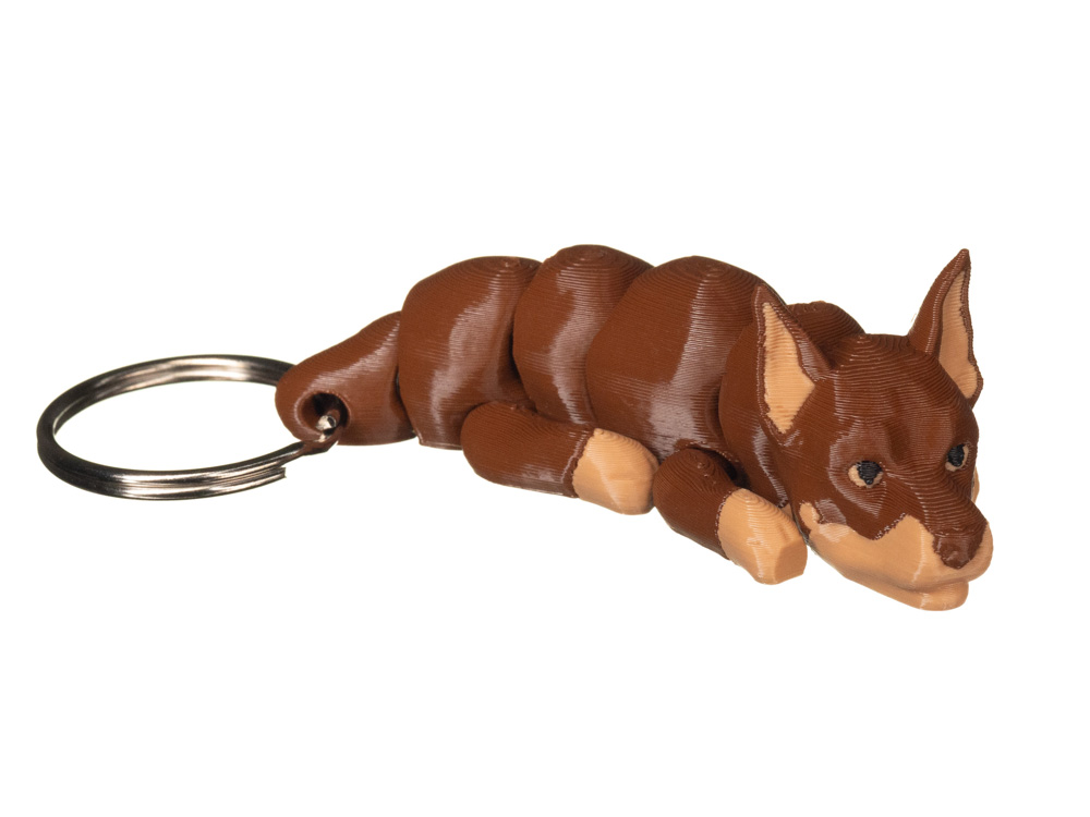 Brelok 3D w kształcie Dobermana to estetyczny dodatek inspirowany charakterystycznym wyglądem tej rasy. Model posiada wyraźnie zaznaczoną głowę, smukłe proporcje oraz kontrastowe umaszczenie. Dominująca brązowa kolorystyka została uzupełniona jaśniejszymi akcentami na pysku, łapach oraz wewnętrznej stronie uszu, co nadaje brelokowi naturalny i spójny wygląd.