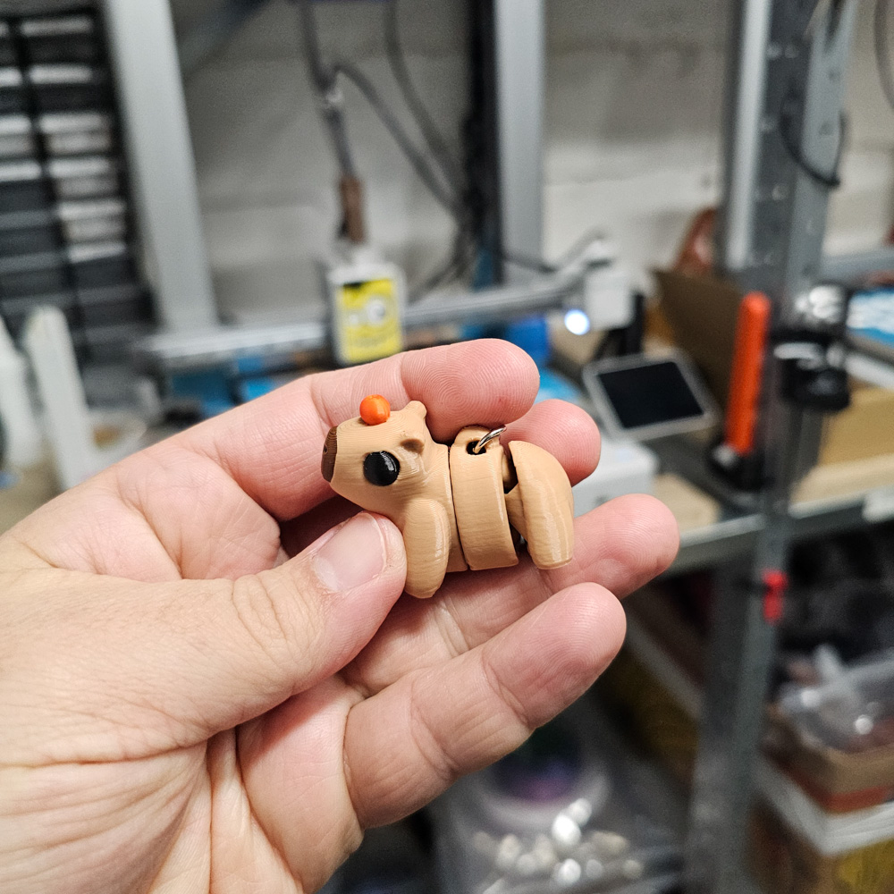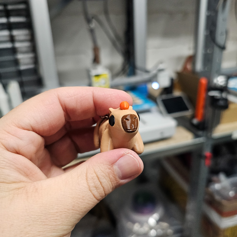 Kapibara z pomarańczą to brelok 3D o wyjątkowo sympatycznym charakterze. Wykonana z PLA w technologii druku 3D, zachowuje lekkość, trwałość oraz estetyczne odwzorowanie szczegółów. Kontrast między jasnobrązową figurką a pomarańczowym akcentem nadaje gadżetowi wyjątkowego, przyjaznego wyglądu, który wyróżnia go wśród codziennych akcesoriów.