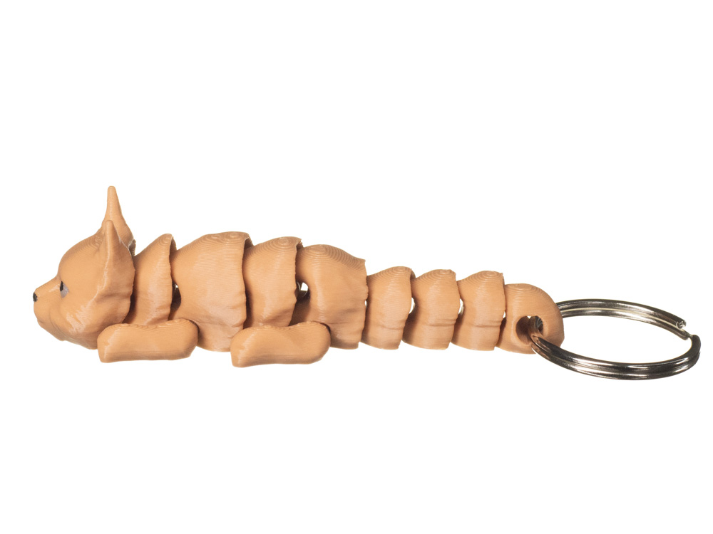 Brelok 3D w kształcie kota dachowca to estetyczny i uniwersalny dodatek inspirowany klasycznym kotem domowym. Model posiada smukłą sylwetkę oraz wyraźnie zaznaczoną głowę i uszy, dzięki czemu zachowuje charakterystyczny wygląd kota i dobrze prezentuje się jako dekoracja kluczy.