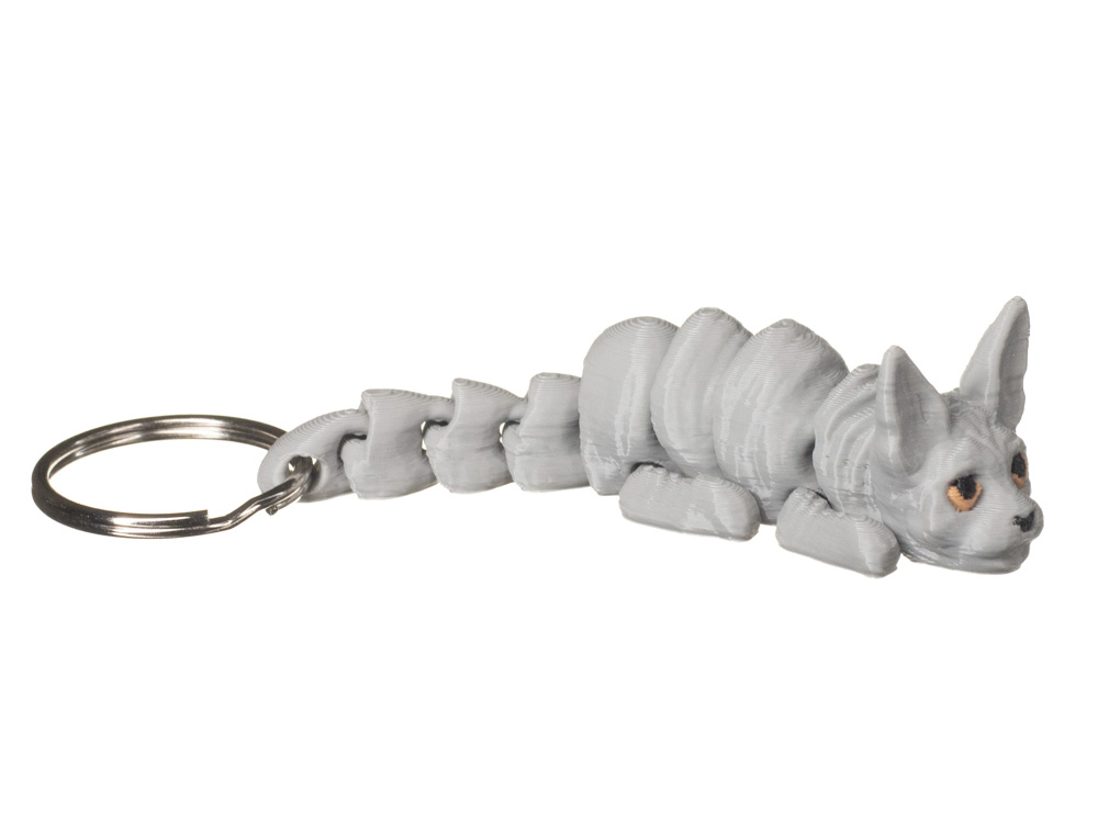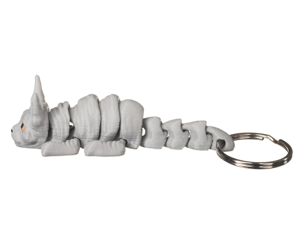 Prezentowany wariant posiada jednolite, jasnoszare wykończenie oraz subtelnie zaznaczone, bursztynowe oczy. Stonowana kolorystyka nadaje brelokowi eleganckiego i nowoczesnego charakteru, a jednocześnie podkreśla detale modelu.