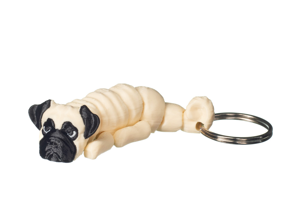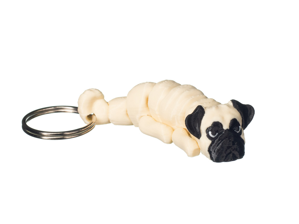 Brelok 3D w kształcie mopsa to sympatyczny i wyrazisty dodatek inspirowany charakterystycznym wyglądem tej rasy. Wariant w jasnej, kremowo-beżowej kolorystyce z kontrastowym czarnym pyskiem prezentuje się lekko i estetycznie. Wyraźnie zaznaczone fałdy oraz detale pyska nadają brelokowi rozpoznawalny wygląd, który przyciąga uwagę.