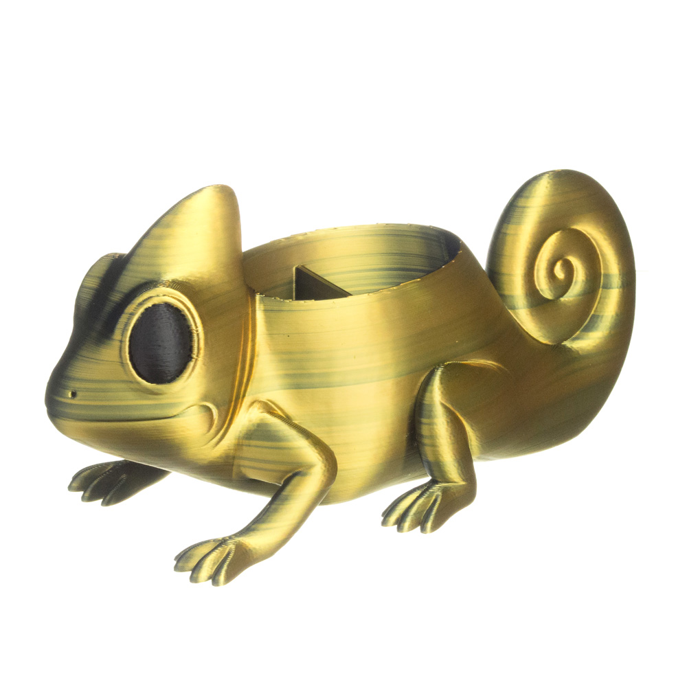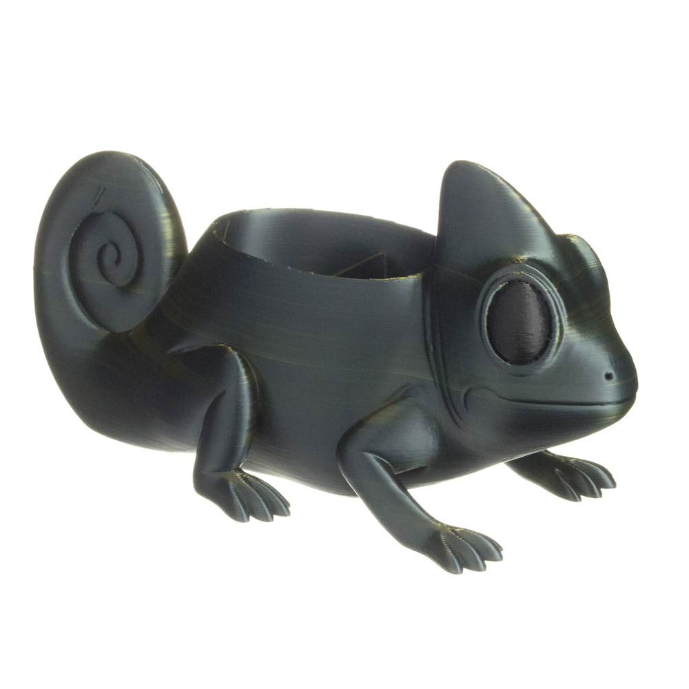 Kameleon został wykonany z PLA – biopolimeru pozyskiwanego z kukurydzy i trzciny cukrowej. Materiał jest bezpieczny, nietoksyczny i bardziej przyjazny środowisku niż klasyczne plastiki. PLA nadaje się do recyklingu i może być przetwarzane przemysłowo w procesie kompostowania.