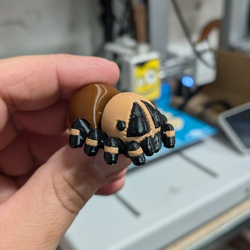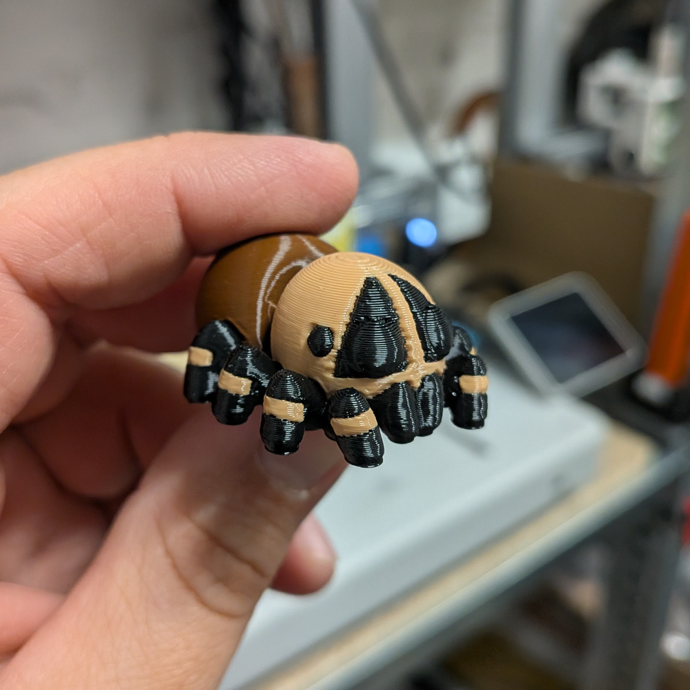 Pająk al'a Brachypelma emilia brelok o wyrazistej formie i minimalistycznym, czystym wyglądzie. Wykonany z materiału PLA w technologii druku 3D, łączy lekkość, trwałość i precyzyjne odwzorowanie sylwetki.