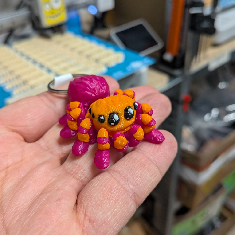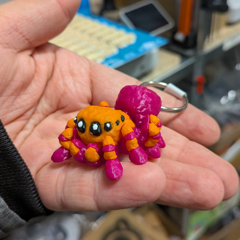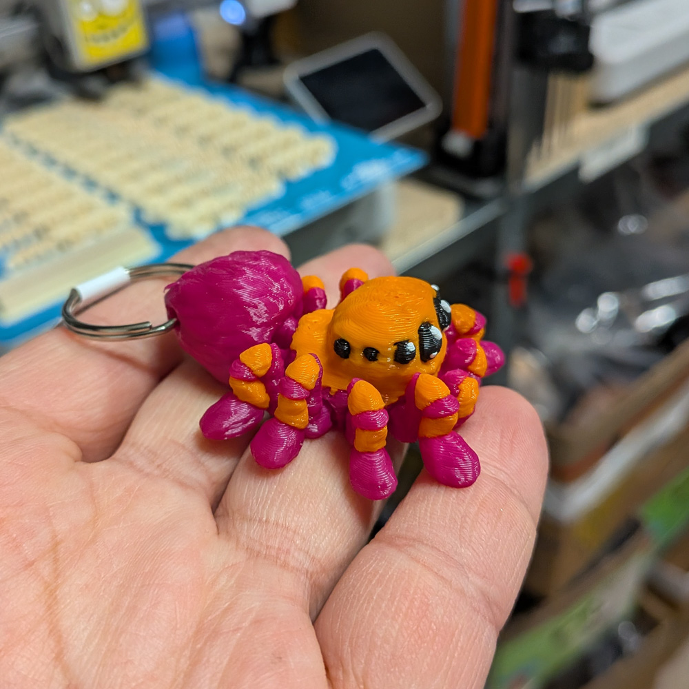 Pająk plus purpurowy - LIMITOWANY to brelok o wyrazistej formie i minimalistycznym, czystym wyglądzie. Wykonany z materiału PLA w technologii druku 3D, łączy lekkość, trwałość i precyzyjne odwzorowanie sylwetki.