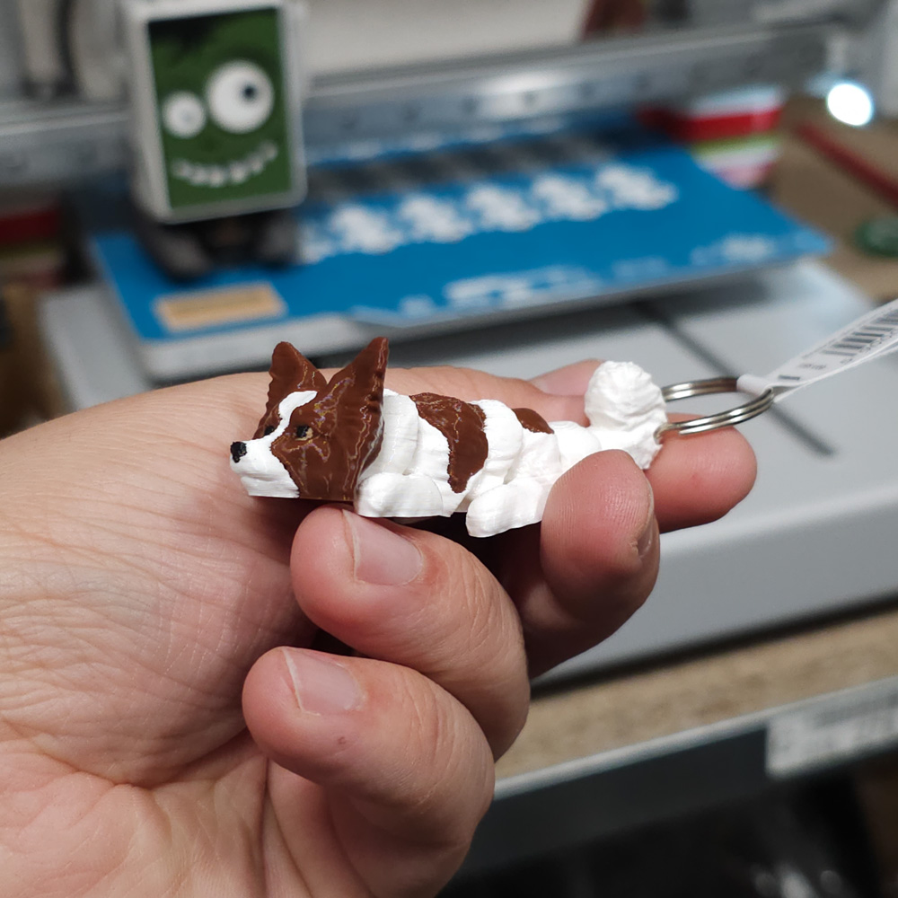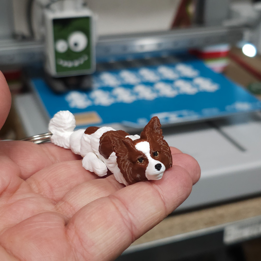 Model został wykonany metodą druku 3D z dbałością o proporcje i szczegóły typowe dla rasy Papillon. Sprawdzi się jako brelok do kluczy, plecaka lub jako drobny prezent dla miłośnika psów.
