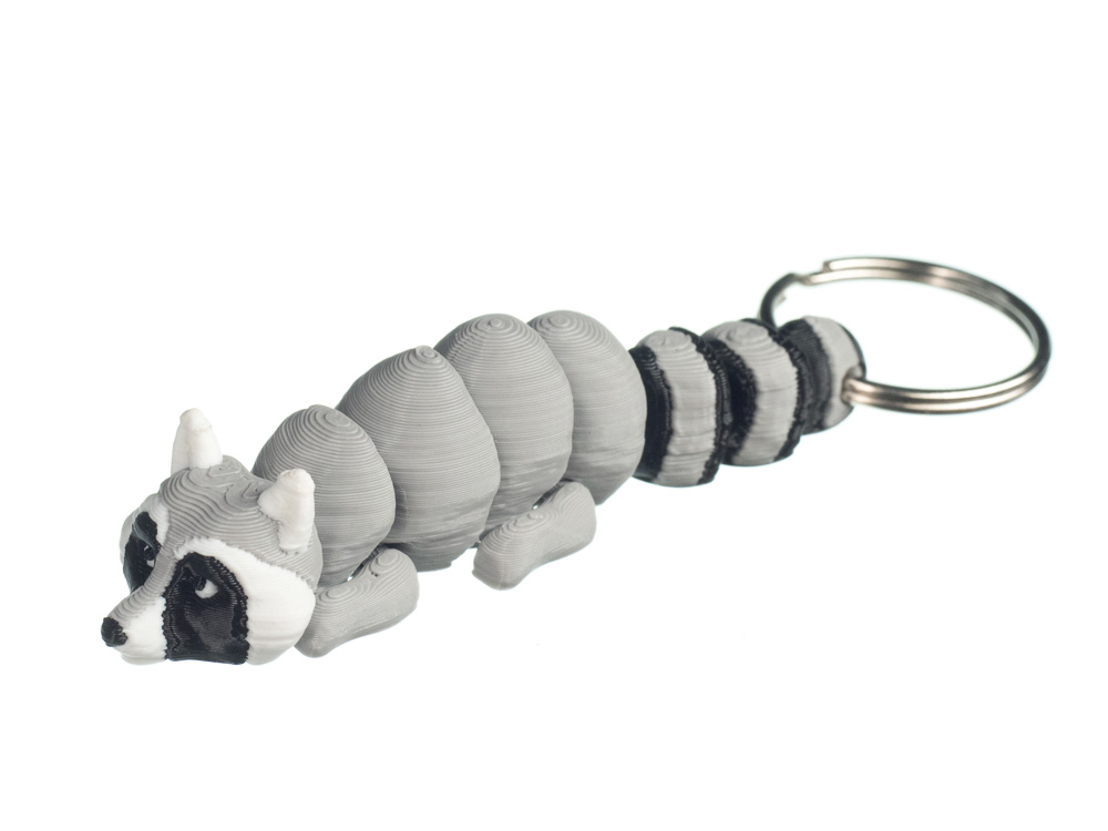 Szary szop w formie breloka 3D to sympatyczny i wyrazisty dodatek, który od razu zwraca uwagę swoimi charakterystycznymi „maskami” wokół oczu. Zaokrąglona sylwetka i delikatna faktura druku 3D nadają figurce nowoczesny, estetyczny wygląd. Lekki i wygodny – idealny na klucze, do torby lub plecaka.