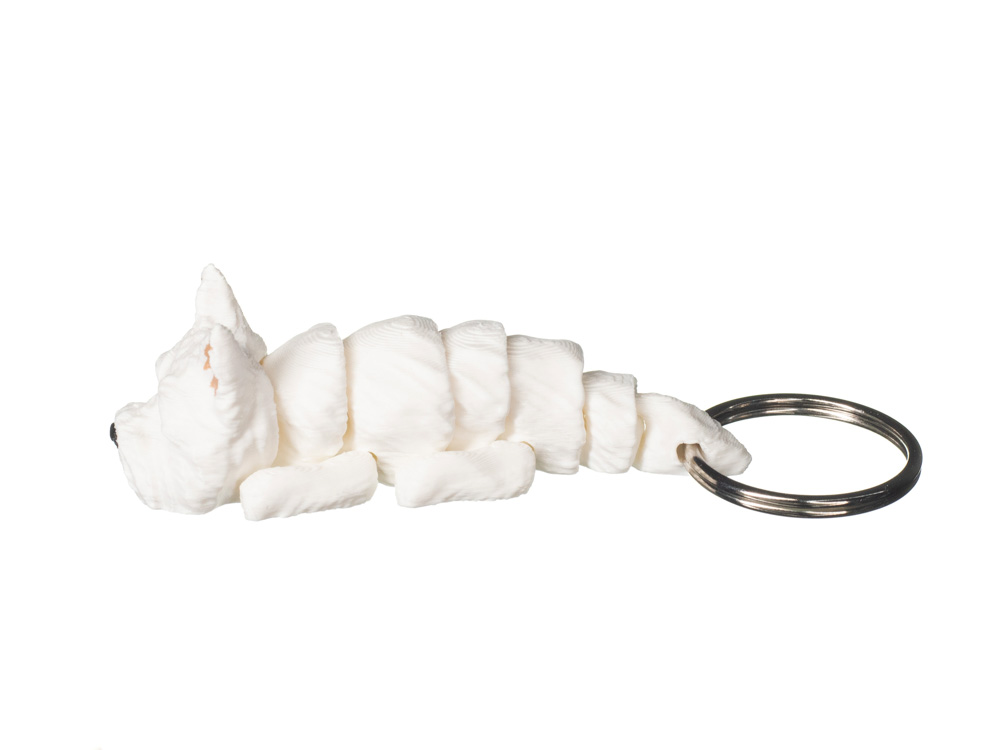 Brelok w kształcie psa rasy West Highland White Terrier to kompaktowy dodatek inspirowany charakterystycznym wyglądem tej rasy. Model oddaje jasne umaszczenie, spiczaste uszy oraz wyrazisty pyszczek, dzięki czemu brelok jest łatwo rozpoznawalny i estetyczny. Sprawdzi się jako codzienny dodatek do kluczy, plecaka lub torby.