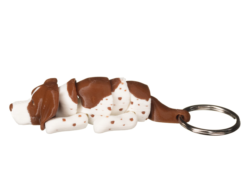 Brelok 3D w kształcie wyżła niemieckiego krótkowłosego to realistyczny dodatek inspirowany wyglądem tej rasy. Model wyróżnia się brązowo-białym umaszczeniem z wyraźnymi łatami oraz drobnymi brązowymi cętkami na białych partiach ciała. Starannie odwzorowane detale pyska, oczu i uszu nadają brelokowi naturalny i rozpoznawalny charakter.